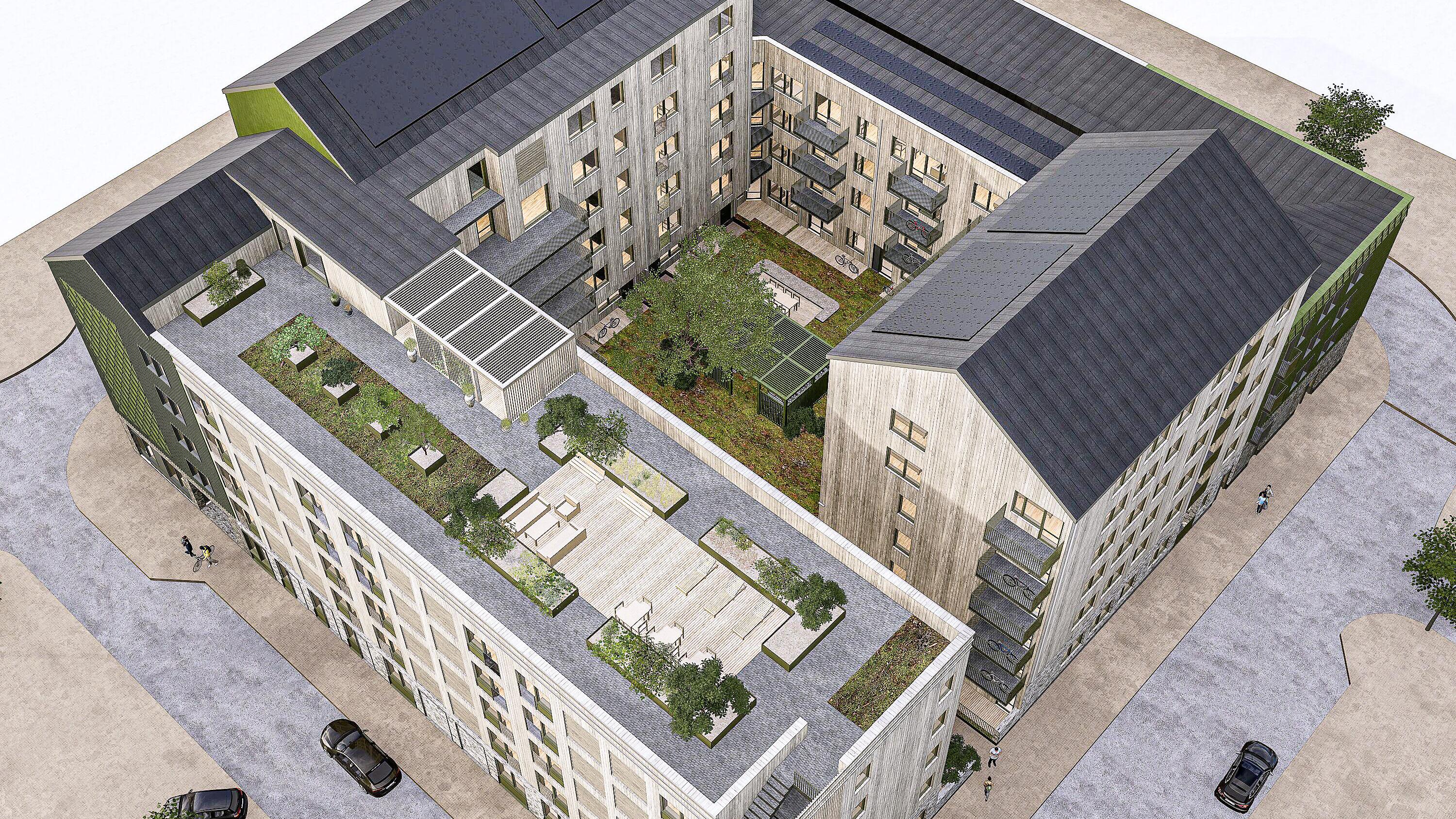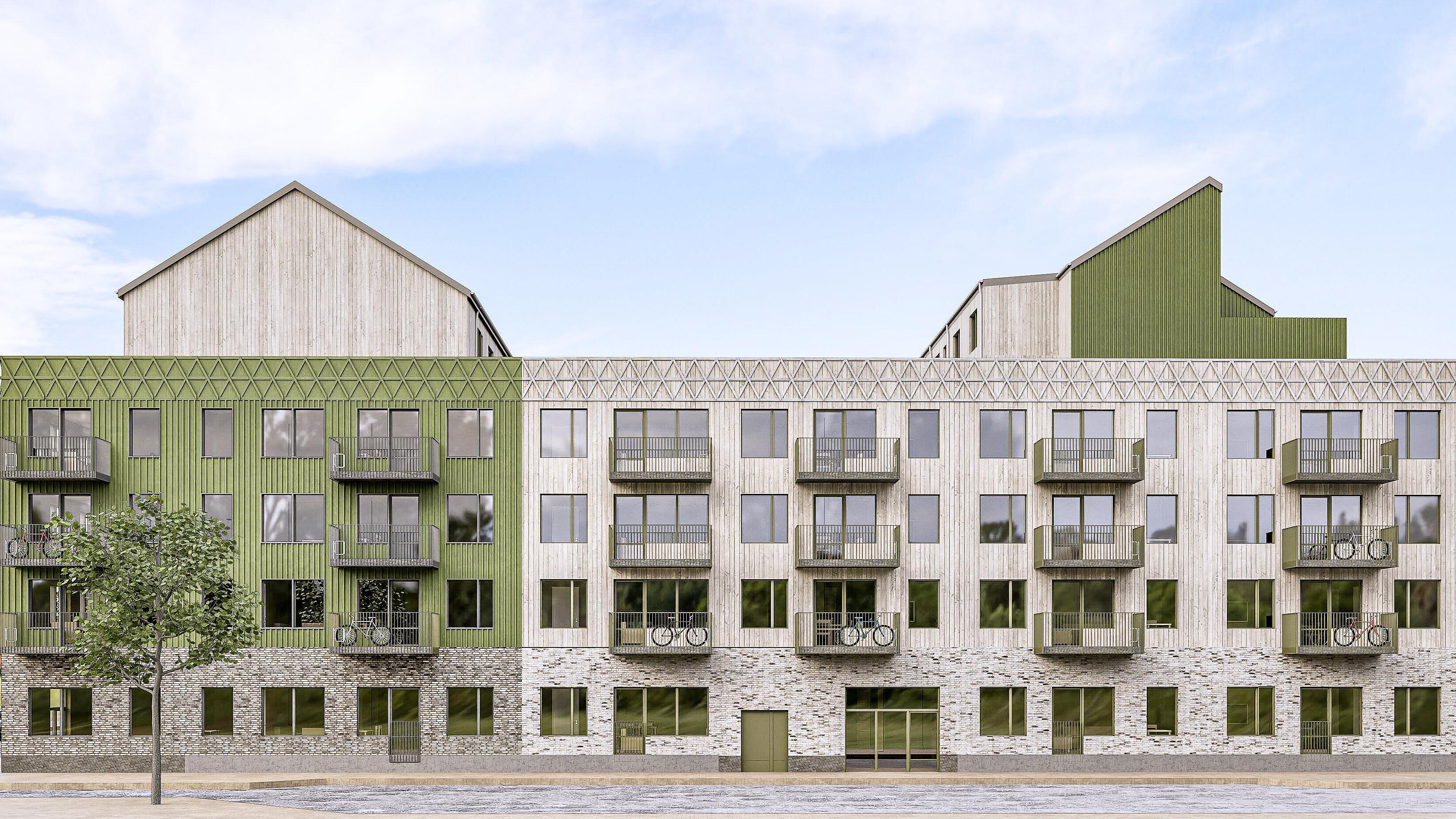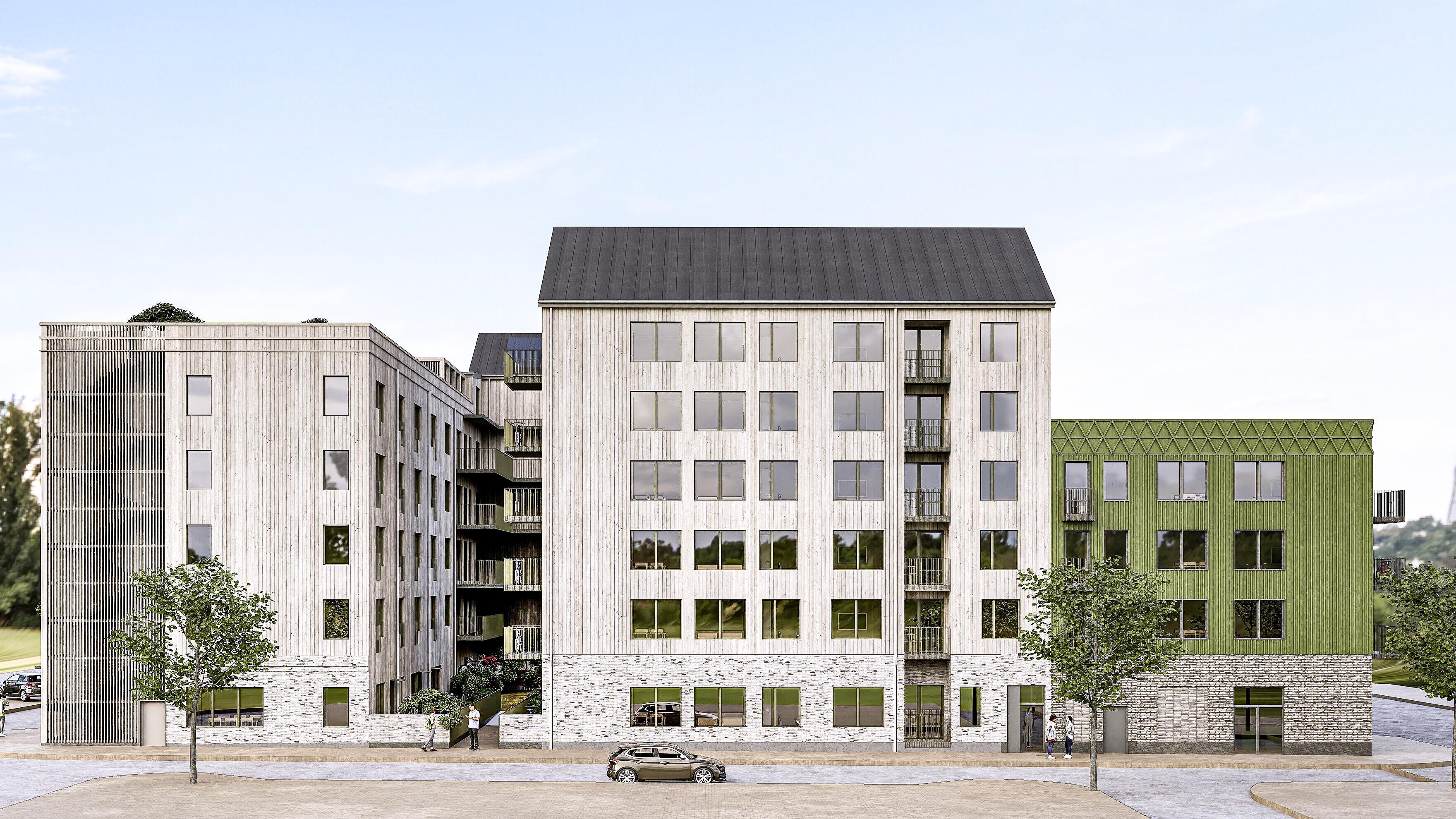 Byggnaden kommer att ha en vacker fasad i trä, solceller på taket, inslag av återbruk och kommer att miljömärkas med Svanen.