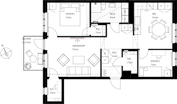Välkommen på digital visning av en lägenhet i brf Juno. Klicka dig runt mellan rummen och kika närmre på allt från köksinredning till det helkaklade badrummet. Lägenheten är i storlek 4 rum och kök, men standarden på fast inredning är genomgående för alla lägenhetstyper.