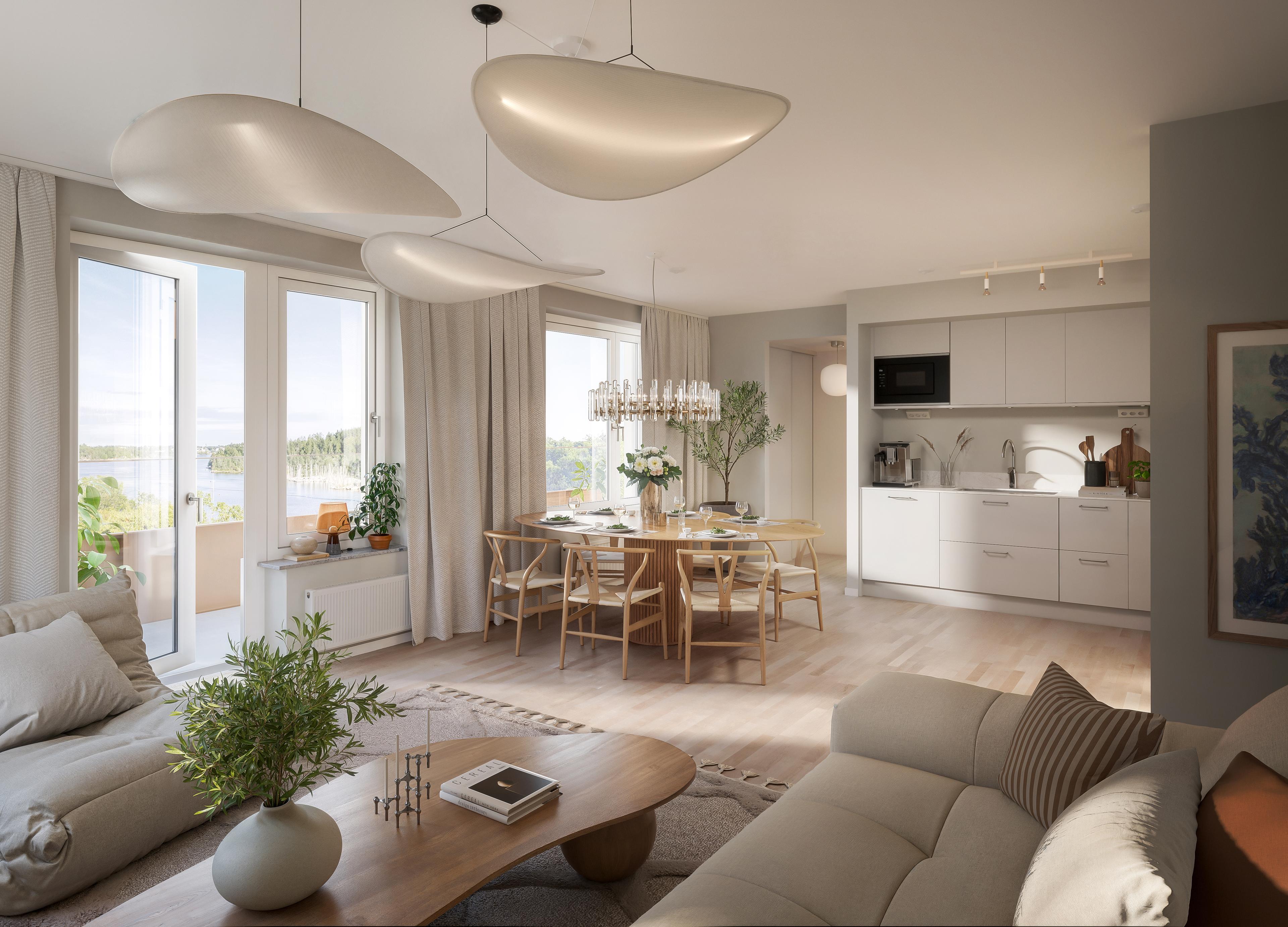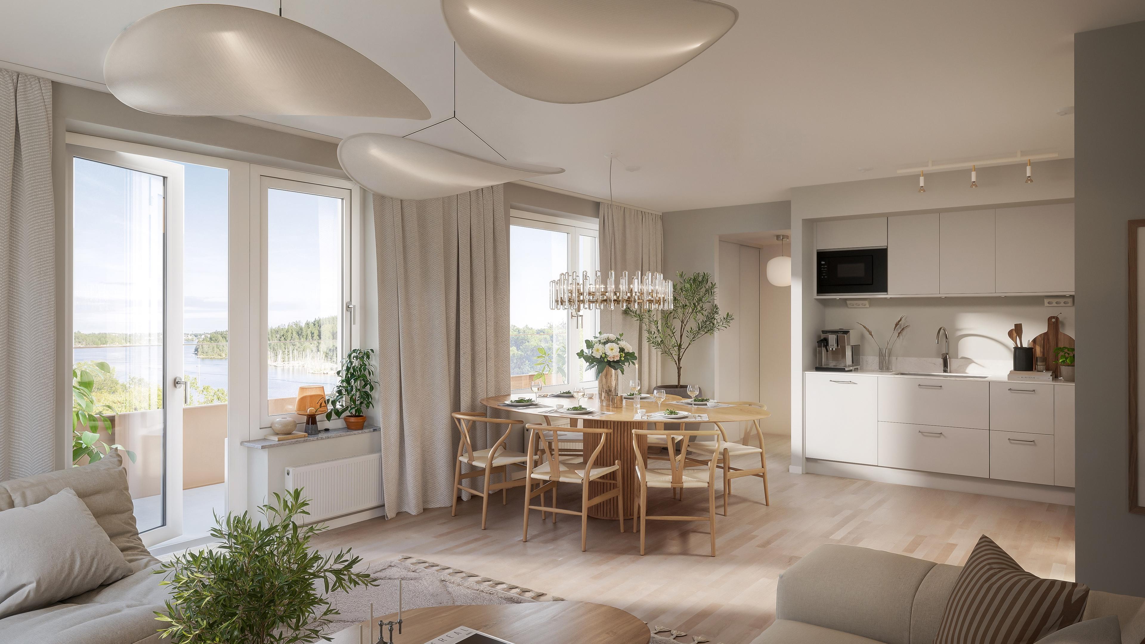 Sjöviken erbjuder 62 lägenheter i storlekar mellan 1-5,5 rum och kök. Allihop med sjöutsikt eller sjöglimt från balkong, uteplats eller gård. Lägenheterna är välplanerade, trivsamt utformade och fyllda med smarta val och tidlös inredning av hög kvalitet.