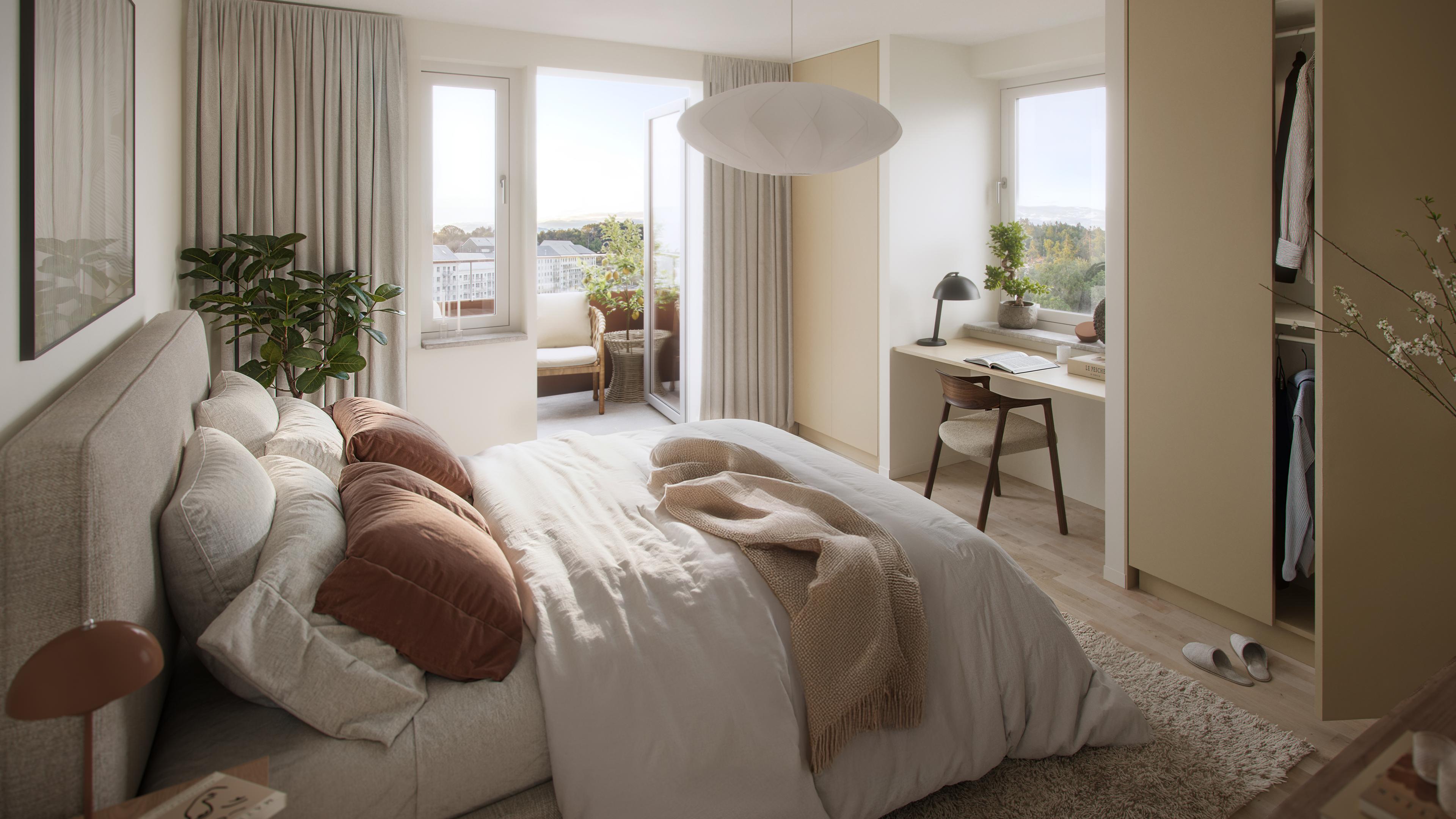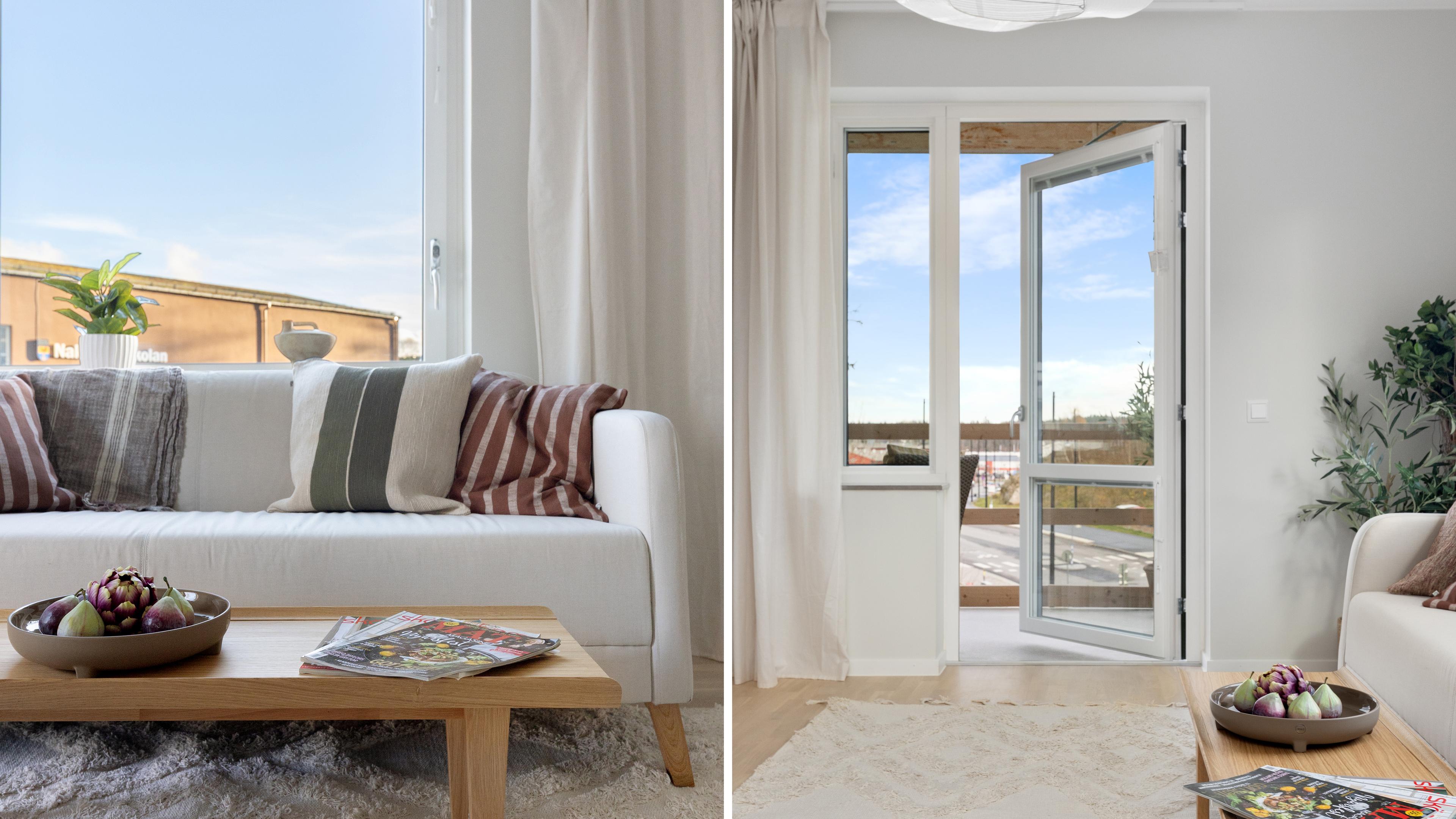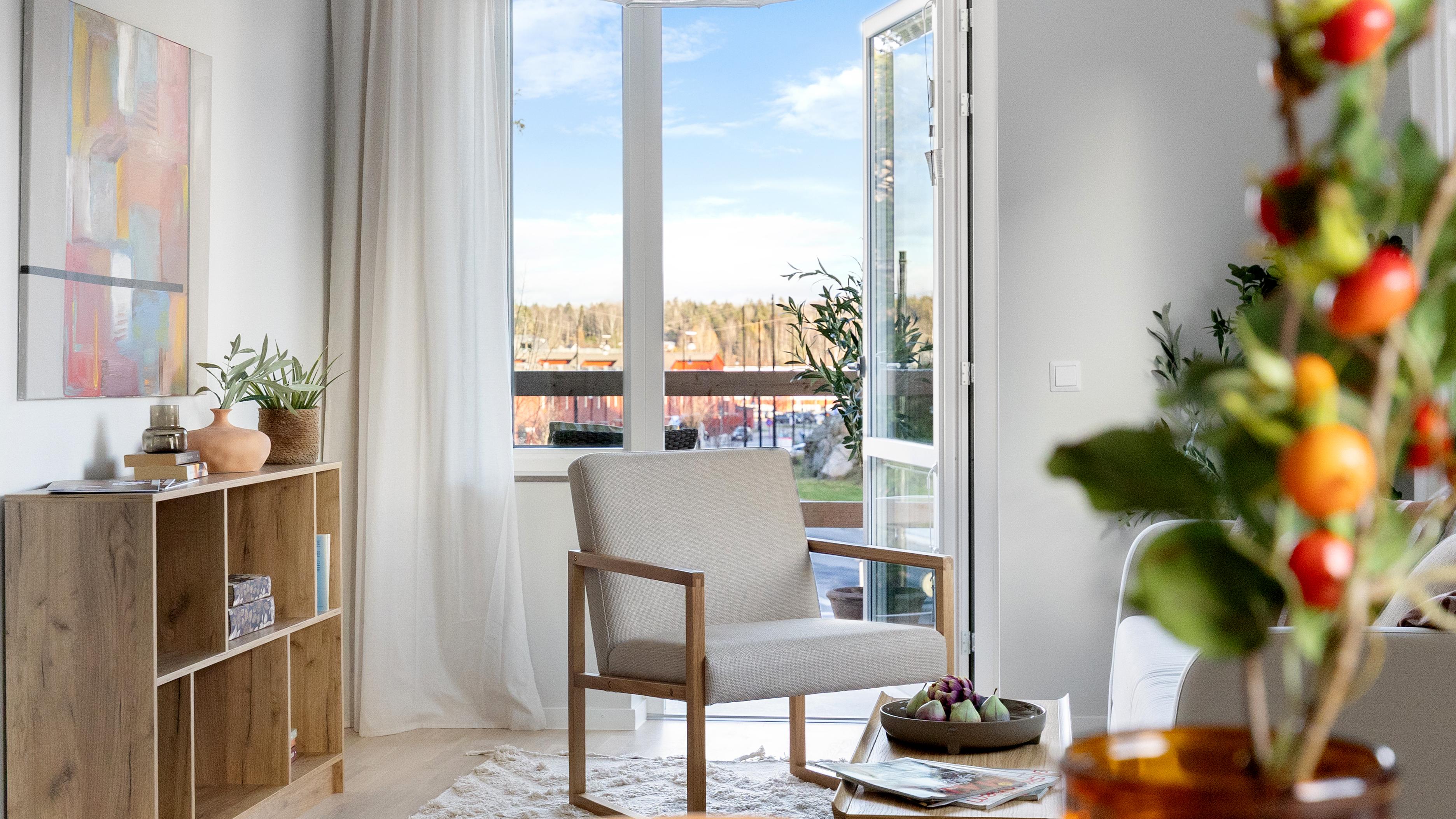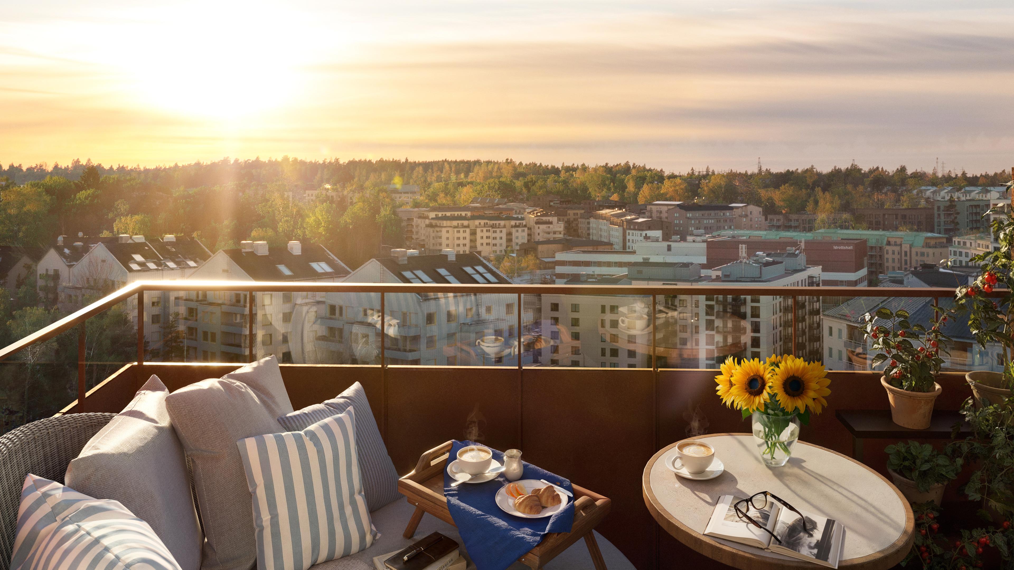 En lugn söndagsmorgon. Doften av nybryggt kaffe blandas med frisk morgonluft från den öppna balkongdörren. Någon sjunker ner i soffan med en varm kopp i handen medan ljuset mjukt sveper över rummet. I Vyn är hemmen skapade för att ge plats åt dessa stunder, stora som små, där morgonen får ta sin tid och vardagen får kännas precis rätt.